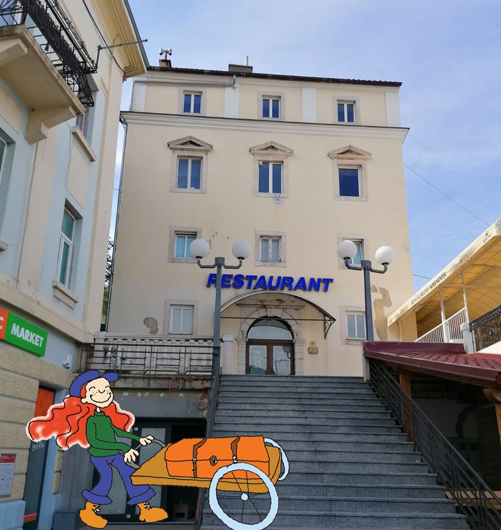 Die Stufen und die Terrasse des Hotels Zagreb aus der Serie waren Schauplätze zahlreiche Szenen. Hier fragte Branko beispielsweise die Musikanten, ob sie seinen Vater kennen, weil er vermeiden wollte, zu seiner Großmutter geschickt zu werden. Das Gebäude wurde im 18. Jh., im Stil des Barock und des Klassizismus als Palais einer Senjer Familie erbaut.