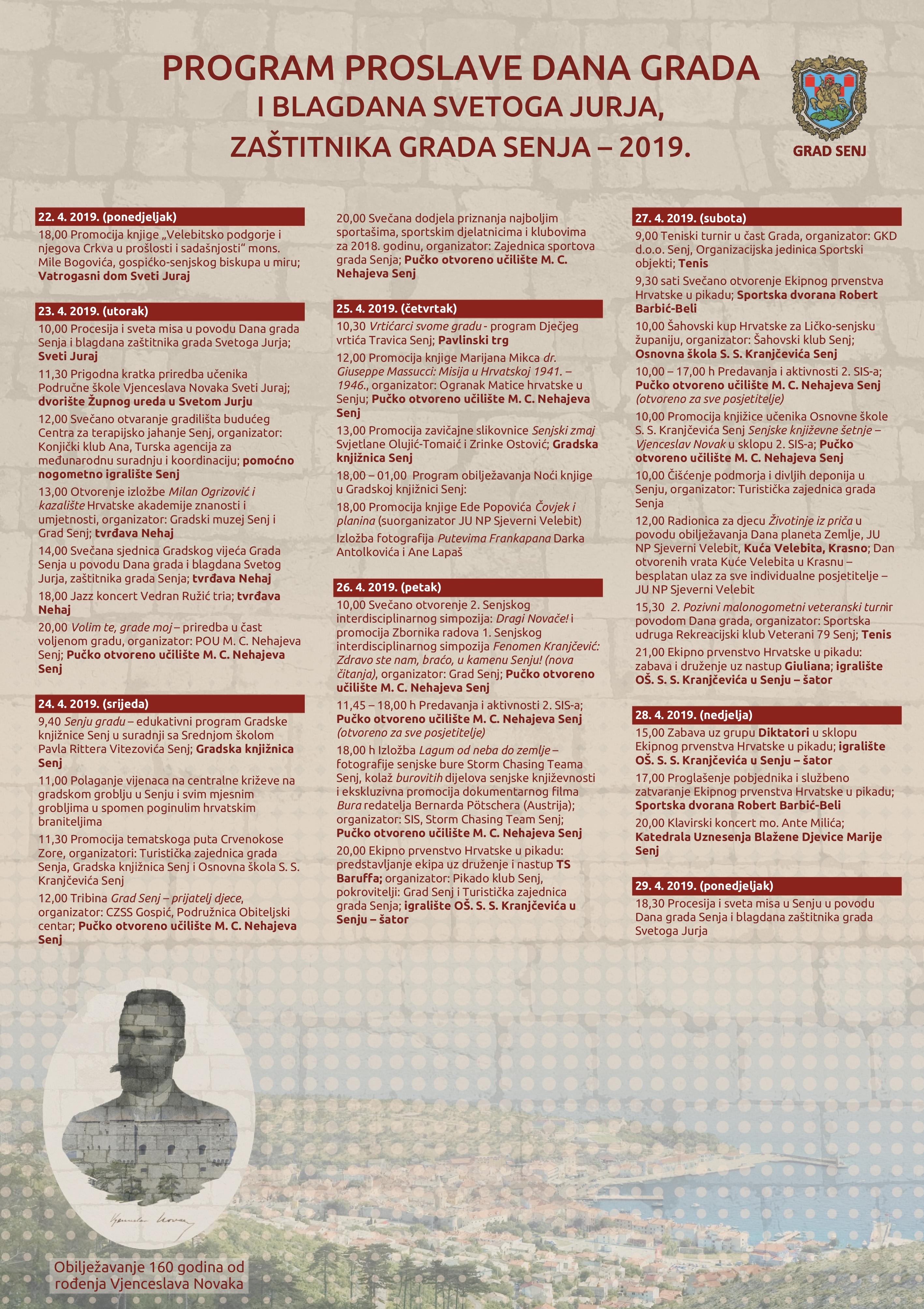 PROGRAM PROSLAVE DANA GRADA I BLAGDANA SVETOGA JURJA, ZAŠTITNIKA GRADA SENJA 2019.