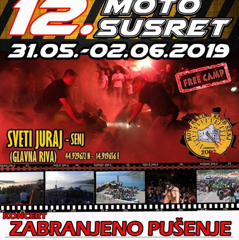 12. Međunarodni moto susret u organizaciji Moto racing kluba Senj započinje 31. svibnja 2019. i traje do 2. lipnja 2019. godine. Ove godine na glavnoj rivi u Svetom Jurju senjski motoristi dočekuju goste iz Slovenije, Austrije, Njemačke, BiH, Italije te svih krajeva Hrvatske uz bogatu ponudu jela i pića, moto igre, tombolu, besplatan ulaz te puno dobre glazbe. Prvog dana susreta okupljene zabavlja grupa Mirakul, a posebna glazbena poslastica ove godine svakako je nastup benda Zabranjeno pušenje, koji nastupa 1. lipnja 2019. (subota) te jamči dobru zabavu do ranih jutarnjih sati.