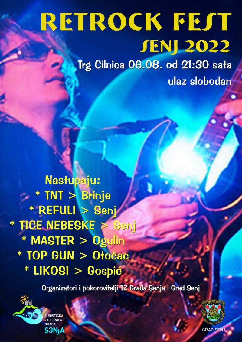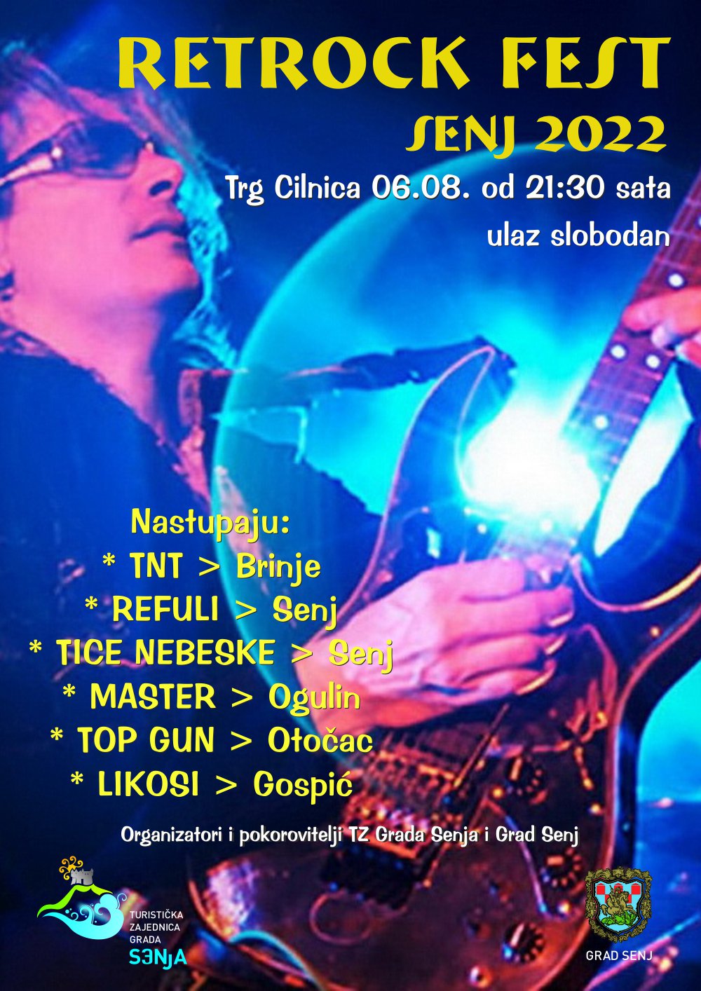 U subotu 6. kolovoza 2022.g.  s početkom u 21:30 na Trgu Cilnica u Senju održat će se peti po redu rock koncert “Retrock Fest Senj 2022”. U vremena dobrog starog rocka vratit će nas rock majstori: TNT-Brinje, REFULI-Senj, TICE NEBESKE-Senj, MASTER-Ogulin, TOP GUN – Otočac i LIKOSI – Gospić. Ovom prilikom grupa Reful iz Senja proslavit će 50 godina svoga postojanja.