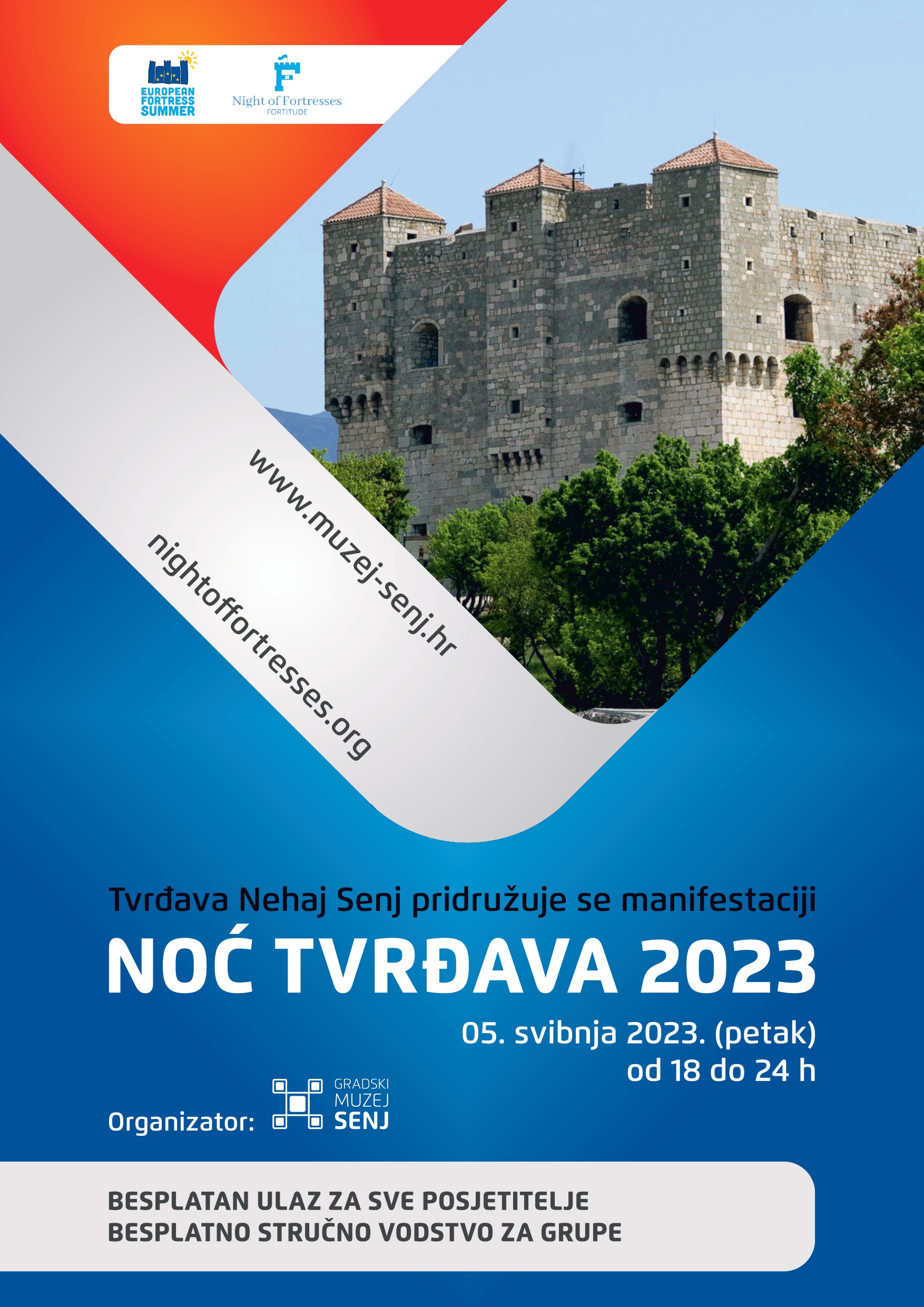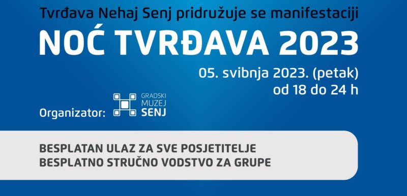 Tvrđava Nehaj Senj uključit će se u ovogodišnju Noć tvrđava dana 5. svibnja 2023.g. od 18 do 24 sata, uz besplatan ulaz i organizirana stručna vodstva po zbirkama i izložbama.