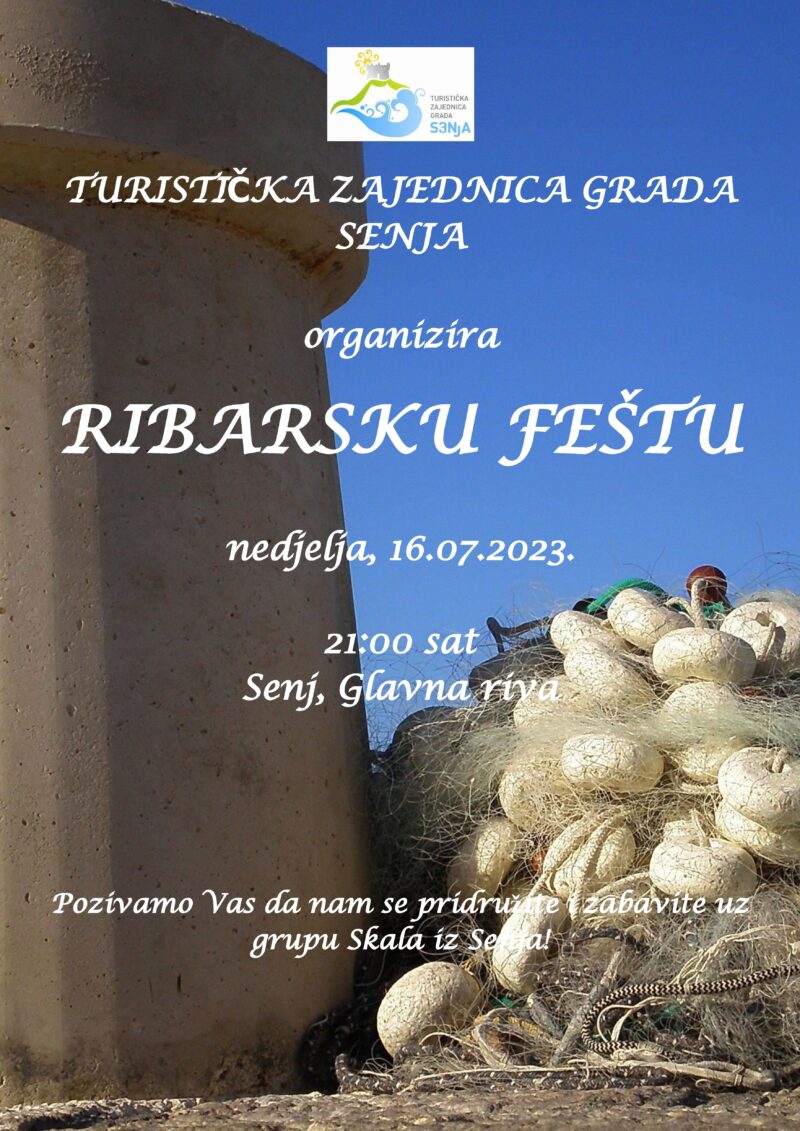 Povodom obilježavanja blagdana Gospe Karmelske (Ribarske) Turistička zajednica Grada Senja organizira u nedjelju 16. srpnja 2023.g. ribarsku feštu koja će se održati na Gatu svetog Nikole (Glavna riva) u Senju s početkom u 21:00 sat. Ovom prilikom spravljat ćemo veliku buzaru od dagnji, a osim buzare moći ćete uživati i u ostalim morskim specijalitetima. Uz ponudu domaćih ribljih jela neće nedostajati niti dobre glazbe za koju će se pobrinuti grupa Skala iz Senja.