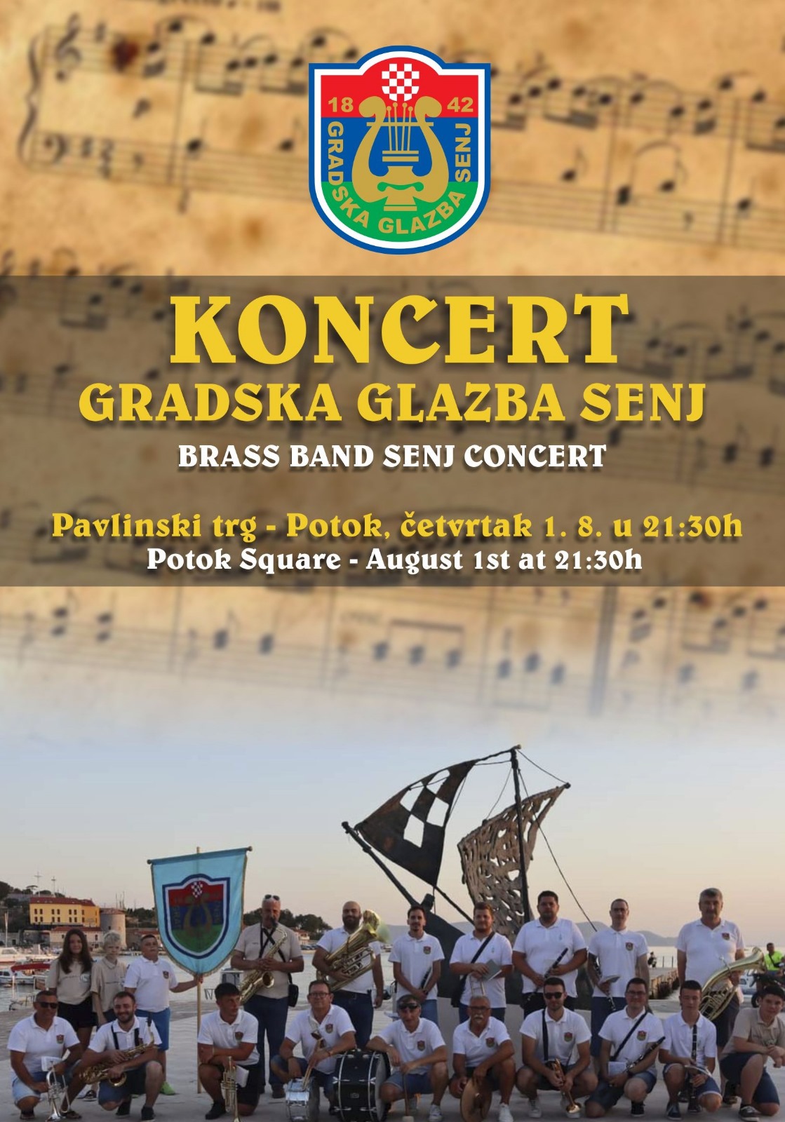 Gradska glazba Senj poziva Vas tradicionalni ljetni koncert koji će se održati 1. kolovoza 2024.g na Pavlinskom trgu u Senju s početkom 21:30 sati.