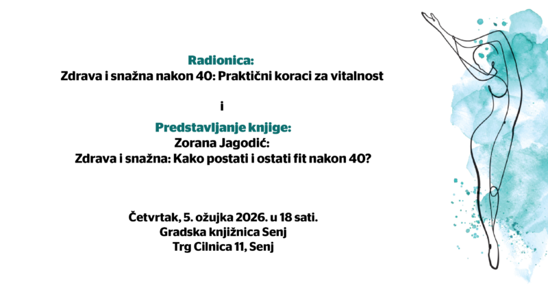 Povodom dana žena Gradska knjižnica Senj poziva vas na radionicu “Zdrava i snažna nakon 40: praktični koraci za vitalnost” kao i na predstavljanje knjige Zorane Jagodić “Zdrava i snažna: Kako postati i ostati fit nakon 40-te?”